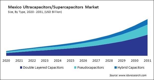 Mexico’s growing automotive industry and its position as a major exporter of auto parts, including energy storage components, contribute significantly to the rising demand for ultracapacitors. The Mexican Automotive Industry Association (AMIA) highlights that Mexico is one of the largest auto parts producers globally, with much of its production exported to the United States. According to the International Trade Administration (ITA), Mexico produced 3.5 million vehicles annually, and 88% of these vehicles are exported. With the production of electric vehicles (EVs) and hybrids growing by 8.5% in 2022, ultracapacitors are increasingly being integrated into the energy systems of these vehicles to support rapid energy delivery and enhance overall vehicle performance. Hence, these trends are expected to continue throughout the forecast period, making the region a critical hub for ultracapacitor innovation and deployment.