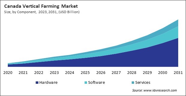 The US market dominated the North America Vertical Farming Market by Country in 2023, and would continue to be a dominant market till 2031; thereby, achieving a market value of $5,850.1 million by 2031. The Canada market is experiencing a CAGR of 21.5% during (2024 - 2031). Additionally, The Mexico market would exhibit a CAGR of 20.4% during (2024 - 2031).