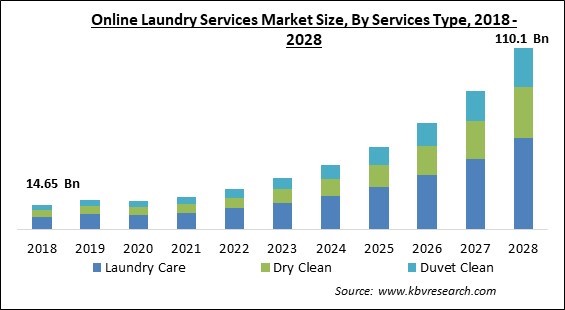 The Global Online Laundry Services Market size is expected to reach $110.1 billion by 2028, rising at a market growth of 28.4% CAGR during the forecast period.