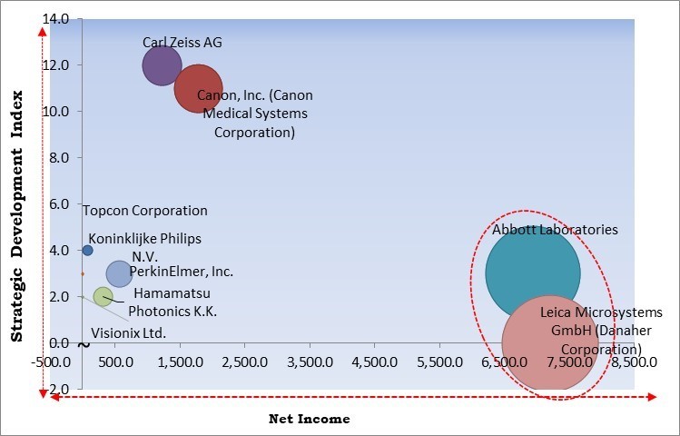 Carl Zeiss AG, Leica Microsystems GmbH (Danaher Corporation), Abbott Laboratories, Canon, Inc. (Canon Medical Systems Corporation), PerkinElmer, Inc., Topcon Corporation, Hamamatsu Photonics K.K., Koninklijke Philips N.V., Heidelberg Engineering, Inc. and Visionix Ltd.