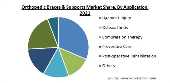 Based on Application, the market is segmented into Ligament Injury, Osteoarthritis, Compression Therapy, Preventive Care, Post-operative Rehabilitation, and Others. The ligament injury segment acquired the maximum revenue share in the orthopedic braces and supports market in 2021. The expanding public engagement in sports and athletic activities (combined with the rising frequency of sports-related injuries), the rising number of accidents globally, and the increasing availability of medical reimbursement for ligament injuries all contribute to this segment's growth.