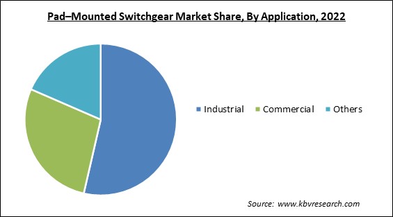 Based on voltage, the pad-mounted switchgear market is segmented into 15-25 kV, 25-38 kV, and others. The 15 to 25 kV segment garnered a remarkable growth rate in the pad-mounted switchgear market in 2022. Generators for wind farms frequently utilize gas-insulated medium voltage switchgear. In distant areas, medium voltage switchgear with SF6 gas insulation is built specifically for the safety of wind turbines. Regardless of the type of circuit breaker incorporated into the system, the primary necessity of medium voltage power networks is to disrupt the current when it is incorrect.