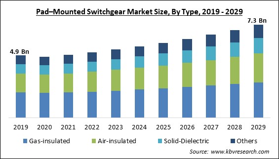 The Global Pad-Mounted Switchgear Market size is expected to reach $7.3 billion by 2029, rising at a market growth of 5.3% CAGR during the forecast period.