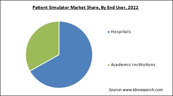 On the basis of product type, the market is bifurcated into adult patient simulator, infant simulator, and childbirth simulator. The adult patient simulator segment witnessed the largest revenue share in the market in 2022. This is due to the fact that an adult patient simulator (APS) is a sophisticated medical simulation system created to give healthcare practitioners a realistic, interactive healthcare experience. It allows students to develop their clinical abilities in a secure setting by simulating a variety of medical settings and patient circumstances. APS is a crucial tool for medical education because it enables practitioners to obtain experience in various clinical settings, including ERs, ORs, and outpatient clinics, propelling the segment's growth.