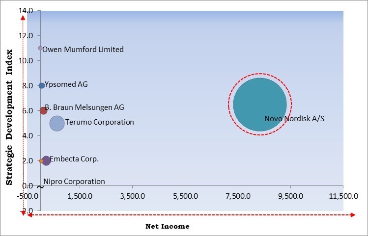 Based on the Analysis presented in the KBV Cardinal matrix; Novo Nordisk A/S is the forerunner in the Market. In September, 2023, Novo Nordisk A/S came into partnership with Aspen Pharmacare Holdings Limited, a global pharmaceutical company. The partnership aimed at providing affordable human insulin to patients within the African continent. Companies such as Terumo Corporation, B. Braun Melsungen AG and Embecta Corp. are some of the key innovators in the Market.