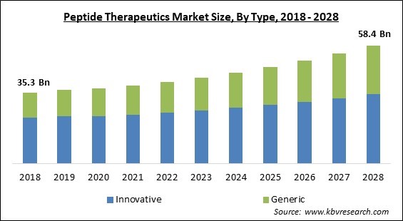 The peptide therapeutics market size is projected to reach USD 58.4 billion by 2028.