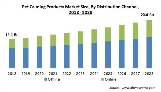 The Offline segment acquired maximum revenue share in the Global Pet Calming Products Market by Distribution Channel in 2021 thereby, achieving a market value of $13.2 billion by 2028.