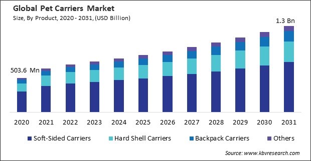 The Global Pet Carriers Market size is expected to reach $1.3 billion by 2031, rising at a market growth of 7.0% CAGR during the forecast period. In the year 2023, the market attained a volume of 15,481.3 thousand units experiencing a growth of 15.2% (2020-2023).