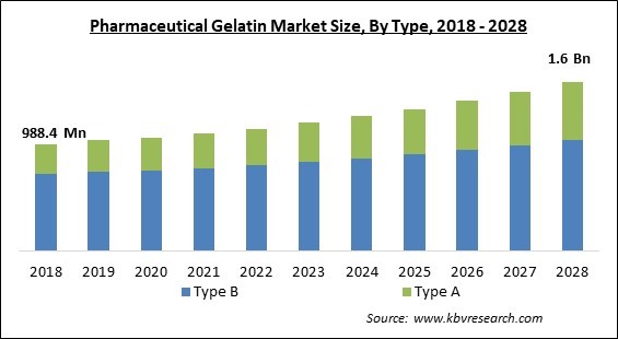 The Type B market acquired maximum revenue share in the Global Pharmaceutical Gelatin Market by Type in 2021; thereby, achieving a market value of $1.0 billion by 2028.