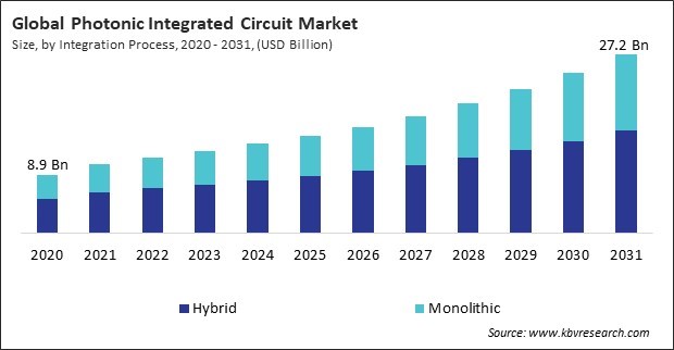 The Global Photonic Integrated Circuit Market size is expected to reach $27.2 billion by 2031, rising at a market growth of 10.4% CAGR during the forecast period.