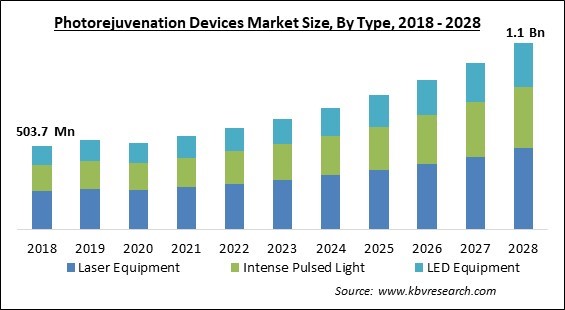 The Global Photorejuvenation Devices Market size is expected to reach $1.1 billion by 2028, rising at a market growth of 10.7% CAGR during the forecast period.
