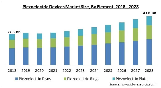 The Piezoelectric Discs market is generating high revenue in the Global Piezoelectric Devices Market by Element in 2021; thereby, achieving a market value of $23.1 Billion by 2028.
