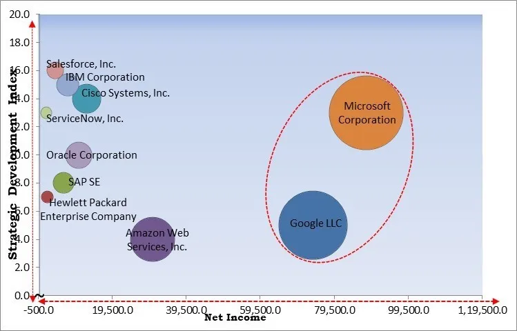 Amazon Web Services, Inc. (Amazon.com, Inc.), Cisco Systems, Inc., Google LLC (Alphabet Inc.), Hewlett Packard Enterprise Company, IBM Corporation, Microsoft Corporation, Oracle Corporation, Salesforce, Inc., SAP SE and ServiceNow, Inc.