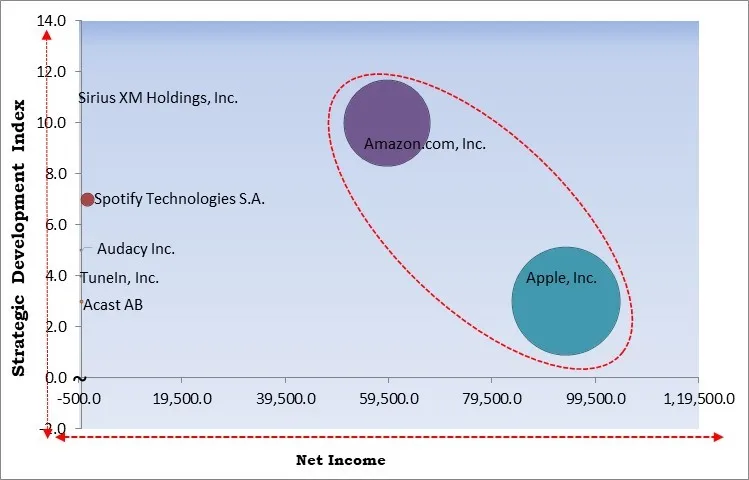 Amazon.com, Inc., Apple, Inc., Sirius XM Holdings, Inc. (Pandora Media, Inc.), Spotify Technologies S.A., SoundCloud Global Limited & Co. KG, Acast AB, Audacy Inc., Podbean Tech Inc., TuneIn, Inc., and iHeartMedia, Inc.