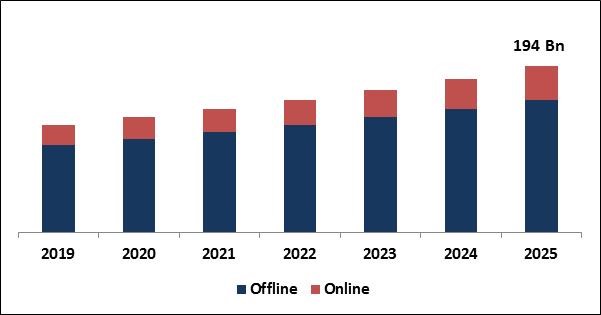 TABLE 22 Global Offline Market by Region, 2019 - 2025, USD Million