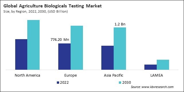 The North America region dominated the Global Agriculture Biologicals Testing Market, by Region in 2022, and would continue to be a dominant market till 2030; thereby, achieving a market value of $1.5 Billion by 2030. The Europe region is anticipated to grow at a CAGR of 6.8% during (2023 - 2030). Additionally, The Asia Pacific region would witness a CAGR of 7.5% during (2023 - 2030).
