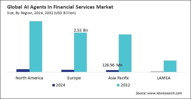 The North America region dominated the Global AI Agents In Financial Services Market by Region in 2024, thereby, achieving a market value of $3.26 billion by 2032. The Europe region is anticipated to grow a CAGR of 44.2% during (2025 - 2032). Additionally, The Asia Pacific region would witness a CAGR of 45.3% during (2025 - 2032).