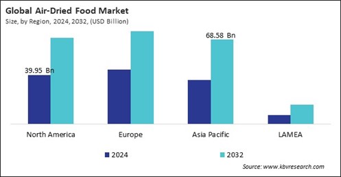 The Europe region dominated the Global Air-Dried Food Market by Region in 2024, thereby, achieving a market value of $75.44 Billion by 2032. The North America region is anticipated to grow a CAGR of 7.5% during (2025 - 2032). Additionally, The Asia Pacific region would witness a CAGR of 8.6% during (2025 - 2032).