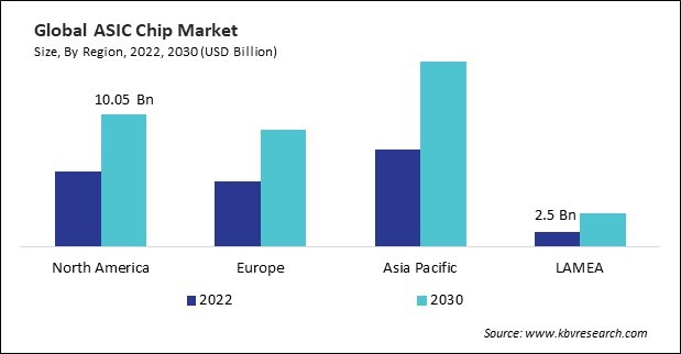 The Asia Pacific region dominated the Global ASIC Chip Market by Region in 2022, and would continue to be a dominant market till 2030; thereby, achieving a market value of $14.1 billion by 2030. The Europe region is anticipating a CAGR of 7.6% during (2023 - 2030). Additionally, The North America region would exhibit a CAGR of 7.5% during (2023 - 2030).