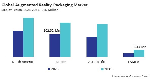 The North America region dominated the Global Augmented Reality Packaging Market by Region in 2023; thereby, achieving a market value of $176.81 million by 2031. The Europe region is expected to witness a CAGR of 5.6% during (2024 - 2031). Additionally, The Asia Pacific region would register a CAGR of 6.5% during (2024 - 2031).