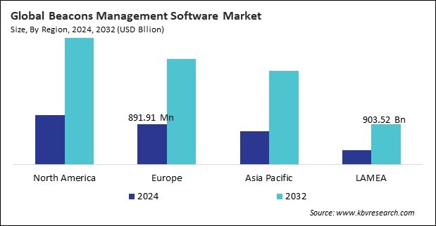 The North America region dominated the Global Beacons Management Software Market by Region in 2024, and would continue to be a dominant market till 2032; thereby, achieving a market value of $2.8 billion by 2032. The Europe region is experiencing a CAGR of 13.2% during (2025 - 2032). Additionally, The Asia Pacific region would exhibit a CAGR of 14.1% during (2025 - 2032).