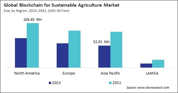 The North America market dominated the Global Blockchain for Sustainable Agriculture Market by Region in 2023, and would continue to be a dominant market till 2031; thereby, achieving a market value of $104.4 million by 2031. The Europe market is expected to witness a CAGR of 5.6% during (2024 - 2031). Additionally, The Asia Pacific market is expected to witness a CAGR of 6.5% during (2024 - 2031).