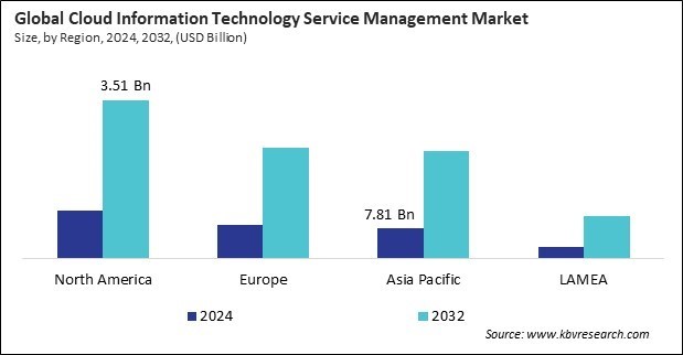 The North America region dominated the Global Cloud Information Technology Service Management Market by Region in 2024, thereby, achieving a market value of $12.00 billion by 2032. The Europe region is anticipated to grow a CAGR of 16.6% during (2025 - 2032). Additionally, The Asia Pacific region would witness a CAGR of 17.7% during (2025 - 2032).
