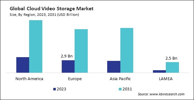 The North America region dominated the Global Cloud Video Storage Market by Region in 2023, and would continue to be a dominant market till 2031; thereby, achieving a market value of $12.4 billion by 2031. The Europe region is experiencing a CAGR of 17.1% during (2024 - 2031). Additionally, The Asia Pacific region would exhibit a CAGR of 18.3% during (2024 - 2031).