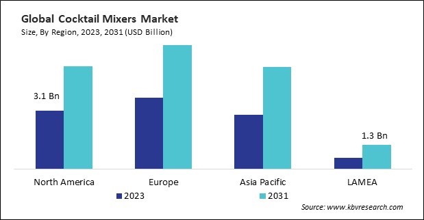 The Europe region dominated the Global Cocktail Mixers Market by Region in 2023, and would continue to be a dominant market till 2031; thereby, achieving a market value of $6.6 billion by 2031. The North America region is anticipating a CAGR of 7.5% during (2024 - 2031). Additionally, The Asia Pacific region would exhibit a CAGR of 8.4% during (2024 - 2031).