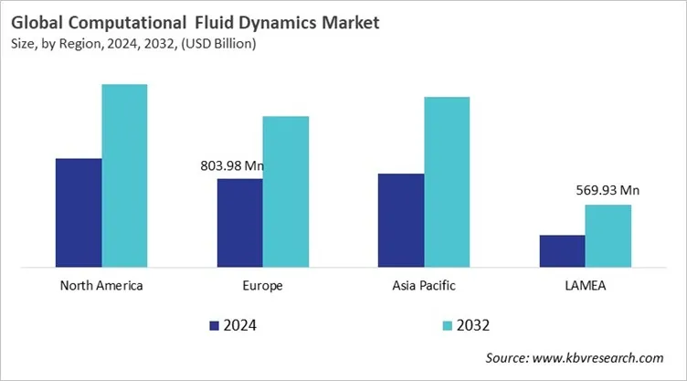The North America region dominated the Global Computational Fluid Dynamics Market by Region in 2024, and would continue to be a dominant market till 2032; thereby, achieving a market value of $1.65 billion by 2032. The Asia Pacific region is experiencing a CAGR of 8% during (2025 - 2032). Additionally, The Europe region is expected to witness a CAGR of 7.1% during (2025 - 2032).