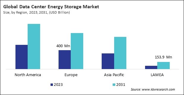 The North America region dominated the Global Data Center Energy Storage Market by Region in 2023, and would continue to be a dominant market till 2031; thereby, achieving a market value of $959.5 million by 2031. The Europe region is anticipated to grow at a CAGR of 8.6% during (2024 - 2031). Additionally, The Asia Pacific region would witness a CAGR of 9.4% during (2024 - 2031).