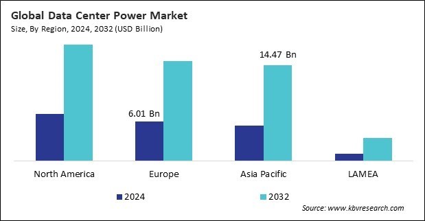 The North America region dominated the Global Data Center Power Market by Region in 2024, thereby, achieving a market value of $18.00 billion by 2032. The Europe region is anticipated to grow a CAGR of 12.4% during (2025 - 2032). Additionally, The Asia Pacific region would witness a CAGR of 13.4% during (2025 - 2032).