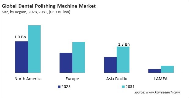 The North America region dominated the Global Dental Polishing Machine Market by Region in 2023, and would continue to be a dominant market till 2031; thereby, achieving a market value of $2.4 billion by 2031. The Europe region is experiencing a CAGR of 5.6% during (2024 - 2031). Additionally, The Asia Pacific region is exhibiting a CAGR of 6.6% during (2024 - 2031).