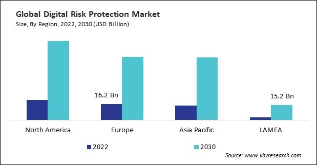 The North America region dominated the Global Digital Risk Protection Market by Region in 2022 thereby, achieving a market value of $80.7 billion by 2030. The Europe region is experiencing a CAGR of 19% during (2023 - 2030). Additionally, The Asia Pacific region would showcase a CAGR of 20.4% during (2023 - 2030).