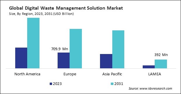 The North America region dominated the Global Digital Waste Management Solution Market by Region in 2023, and would continue to be a dominant market till 2031; thereby, achieving a market value of $2.3 billion by 2031. The Europe region is exhibiting a CAGR of 12.2% during (2024 - 2031). Additionally, The Asia Pacific region would showcase a CAGR of 13.1% during (2024 - 2031).
