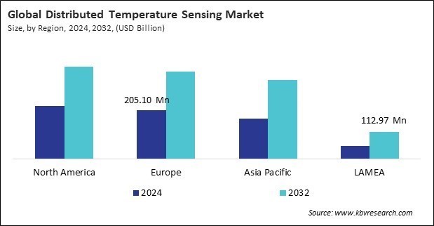 The North America region dominated the Global Distributed Temperature Sensing Market by Region in 2024, and would continue to be a dominant market till 2032; thereby, achieving a market value of $389.1 million by 2032. The Europe region is anticipated to grow at a CAGR of 7.8% during (2025 - 2032). Additionally, The Asia Pacific region would witness a CAGR of 9% during (2025 - 2032).