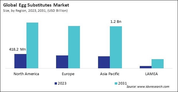 The North America region dominated the Global Egg Substitutes Market by Region in 2023 and would continue to be a dominant market till 2031; thereby, achieving a market value of $1.3 billion by 2031. The Europe region is anticipated to grow at a CAGR of 16.1% during (2024 - 2031). Additionally, The Asia Pacific region would witness a CAGR of 17% during (2024 - 2031).