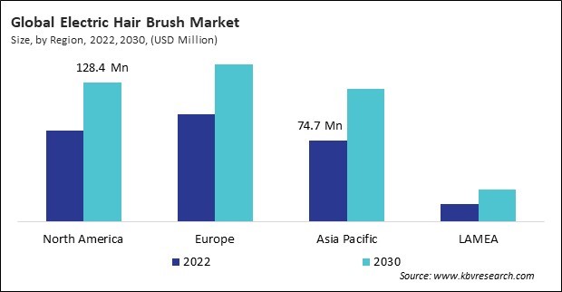The Europe region dominated the Global Electric Hair Brush Market, By Region in 2022, and would continue to be a dominant market till 2030; thereby, achieving a market value of $144.4 million by 2030. The North America region is experiencing a CAGR of 5.5% during (2023 - 2030). Additionally, The Asia Pacific region would exhibit a CAGR of 6.4% during (2023 - 2030).