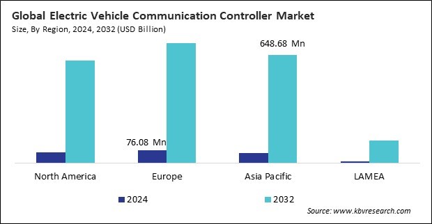 The Europe region dominated the Global Electric Vehicle Communication Controller Market by Region in 2024, and would continue to be a dominant market till 2032; thereby, achieving a market value of $717.7 million by 2032. The Asia Pacific region is experiencing a CAGR of 34.9% during (2025 - 2032). Additionally, The North America region would exhibit a CAGR of 33.7% during (2025 - 2032).