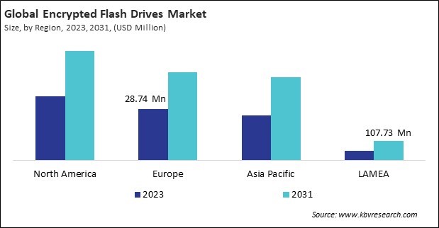 The North America region dominated the Global Encrypted Flash Drives Market by Region in 2023, and would continue to be a dominant market till 2031; thereby, achieving a market value of $61,364.4 Thousands by 2031. The Europe region is anticipated to grow at a CAGR of 7.3% during (2024 - 2031). Additionally, The Asia Pacific region would witness a CAGR of 8.2% during (2024 - 2031).