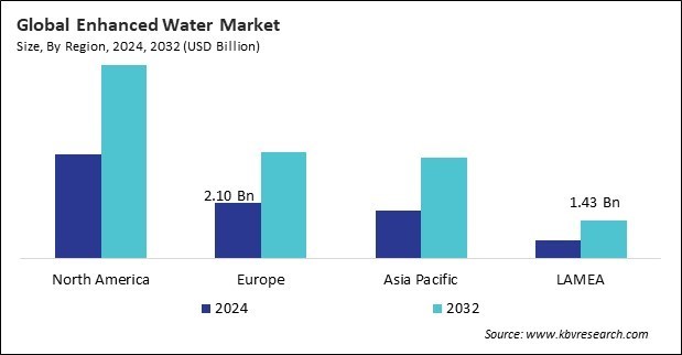 The North America region dominated the Global Enhanced Water Market by Region in 2024, thereby, achieving a market value of $7.32 billion by 2032. The Europe region is anticipated to grow a CAGR of 8.6% during (2025 - 2032). Additionally, The Asia Pacific region would witness a CAGR of 9.9% during (2025 - 2032).
