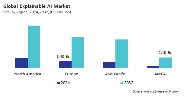 The North America region dominated the Global Explainable AI Market by Region in 2024, and would continue to be a dominant market till 2032; thereby, achieving a market value of $8.39 billion by 2032. The Europe region is experiencing a CAGR of 19.9% during (2025 - 2032). Additionally, The Asia Pacific region would showcase a CAGR of 21.4% during (2025 - 2032).