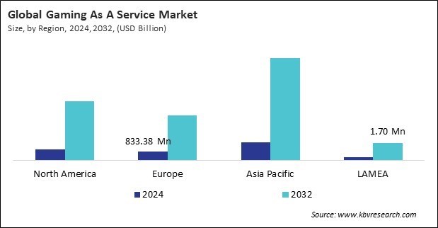 The Asia Pacific region dominated the Global Gaming As A Service Market by Region in 2024, and would continue to be a dominant market till 2032; thereby, achieving a market value of $10.2 billion by 2032. The North America region is anticipated to grow at a CAGR of 23.6% during (2025 - 2032). Additionally, The Europe region would witness a CAGR of 23.8% during (2025 - 2032).