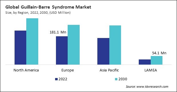 The North America region dominated the Global Guillain-Barre Syndrome Market by Region in 2022, and would continue to be a dominant market till 2030; thereby, achieving a market value of $295.7 million by 2030. The Europe region is experiencing a CAGR of 4.4% during (2023 - 2030). Additionally, The Asia Pacific region would exhibit a CAGR of 5.1% during (2023 - 2030).