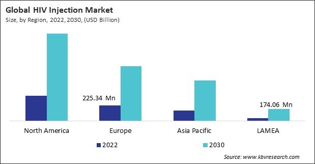 The North America region dominated the Global HIV Injection Market by Region in 2022, and would continue to be a dominant market till 2030; thereby, achieving a market value of $1.3 Billion by 2030. The Europe region is anticipated to grow at a CAGR of 17.4% during (2023 - 2030). Additionally, The Asia Pacific region would witness a CAGR of 18.7% during (2023 - 2030).