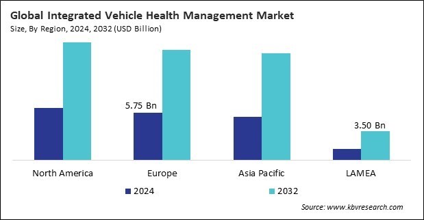 The North America region dominated the Global Integrated Vehicle Health Management Market by Region in 2024, thereby, achieving a market value of $14.37 billion by 2032. The Europe region is anticipated to grow a CAGR of 11.4% during (2025 - 2032). Additionally, The Asia Pacific region would witness a CAGR of 12.1% during (2025 - 2032).