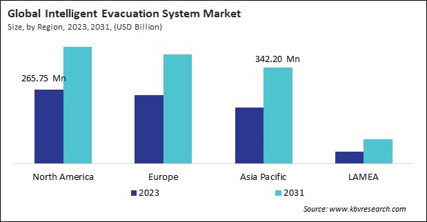 The North America region dominated the Global Intelligent Evacuation System Market by Region in 2023, and would continue to be a dominant market till 2031; thereby, achieving a market value of $417.7 Million by 2031. The Europe region is experiencing a CAGR of 6.2% during (2024 - 2031). Additionally, The Asia Pacific region would exhibit a CAGR of 7.2% during (2024 - 2031).