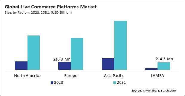 The Asia Pacific region dominated the Global Live Commerce Platforms Market by Region in 2023, and would continue to be a dominant market till 2031; thereby, achieving a market value of $1.4 billion by 2031. The North America region is experiencing a CAGR of 19.3% during (2024 - 2031). Additionally, The Europe region would exhibit a CAGR of 19.6% during (2024 - 2031).