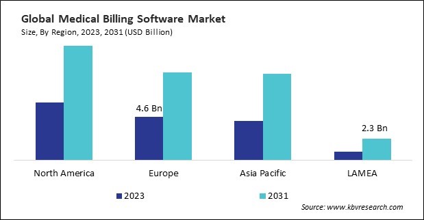The North America region dominated the Global Medical Billing Software Market by Region in 2023, and would continue to be a dominant market till 2031; thereby, achieving a market value of $12.2 billion by 2031. The Europe region is experiencing a CAGR of 9.6% during (2024 - 2031). Additionally, The Asia Pacific region would exhibit a CAGR of 10.8% during (2024 - 2031).