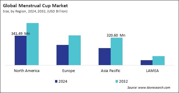 The North America region dominated the Global Menstrual Cup Market by Region in 2024, and would continue to be a dominant market till 2032; thereby, achieving a market value of $489.7 Million by 2032. The Europe region is anticipated to grow at a CAGR of 5.1% during (2025 - 2032). Additionally, The Asia Pacific region would witness a CAGR of 6.3% during (2025 - 2032).